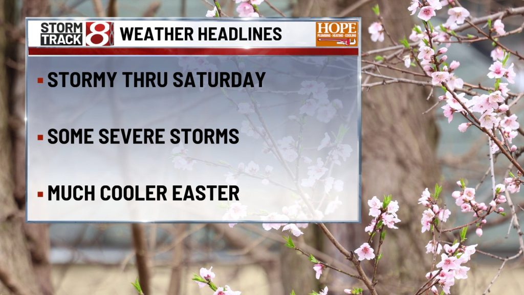 After the warm and stormy start to the weekend, the pattern turns quieter and noticeably cooler by Easter Sunday and into early next week. Highs fall from the 70s Friday and Saturday back into the 50s Sunday and Monday, with nights dropping into the 30s and a few mornings next week carrying at least some frost or freeze potential in colder spots. So the big picture is a classic spring swing, stormier and summerlike up front, then calmer and more seasonable once the weekend wraps up.