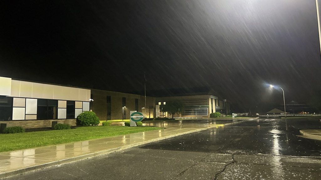 Superintendent Terry Terhune of Greenwood Community Schools tells News 8 that at least one tree was downed and the auditorium received some damage at Greenwood Community High School.